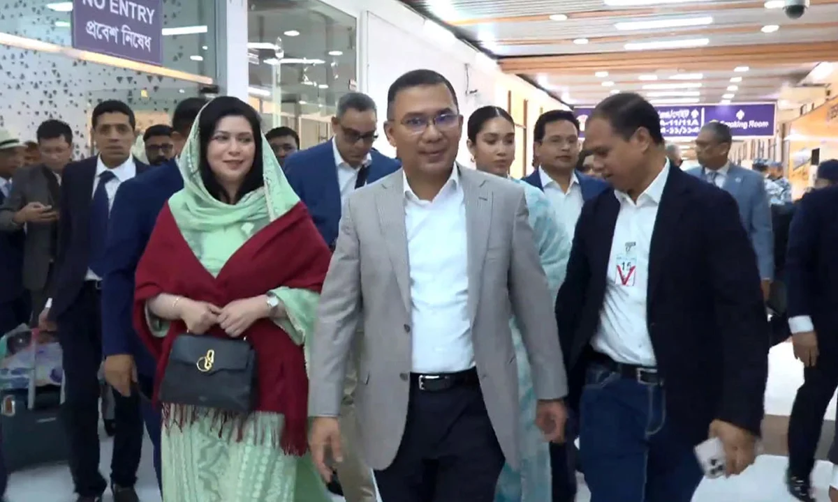 ইমিগ্রেশন প্রক্রিয়া সম্পন্ন করার পর বিমানবন্দরের ভিআইপি লাউঞ্জে তারেক রহমানকে প্রথমে ফুল দিয়ে স্বাগত জানান দলের মহাসচিব মির্জা ফখরুল ইসলাম আলমগীর। পরে বিএনপির ভারপ্রাপ্ত চেয়ারম্যান মির্জা ফখরুল ও স্থায়ী কমিটির সদস্যদের সঙ্গে একে একে আলিঙ্গন করেন। এছ...